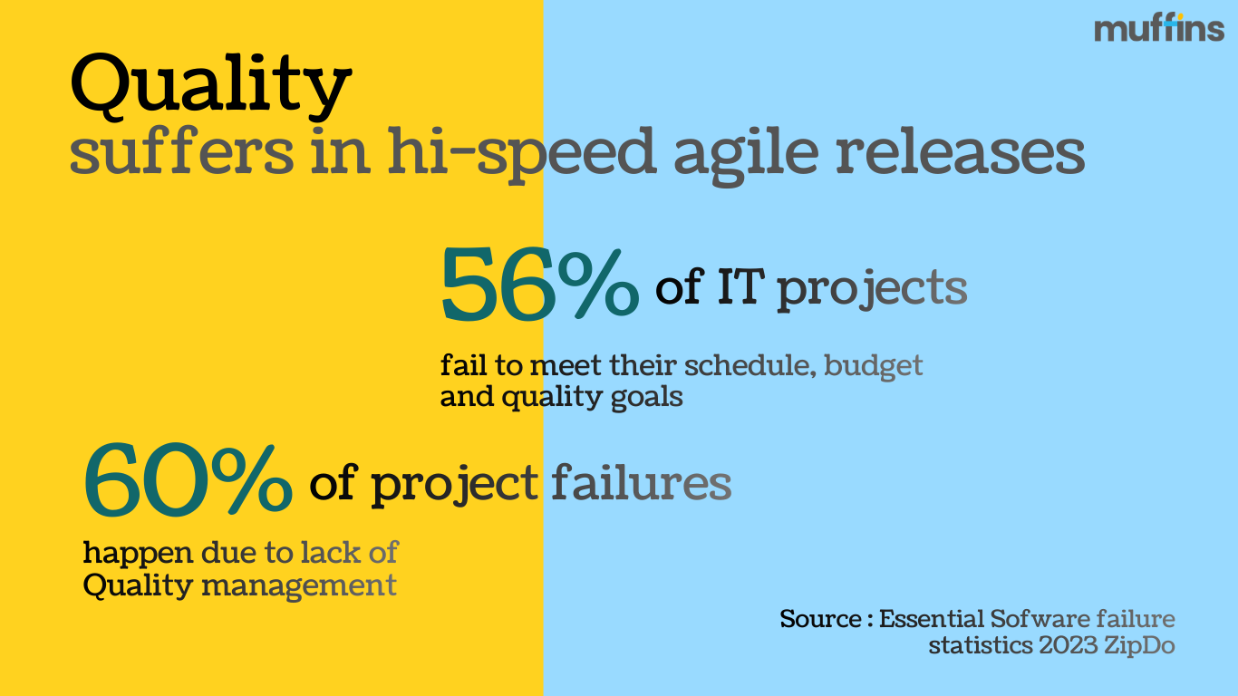 Quality crisis comes from agile teams prioritizing feature delivery speed over the rigor of design and testing. Due to tight sprint deadlines (often 1-3 weeks), teams may take shortcuts in design and coding. This often results in a technically sound product – with quality issues or missed edge cases, impacting the usability.