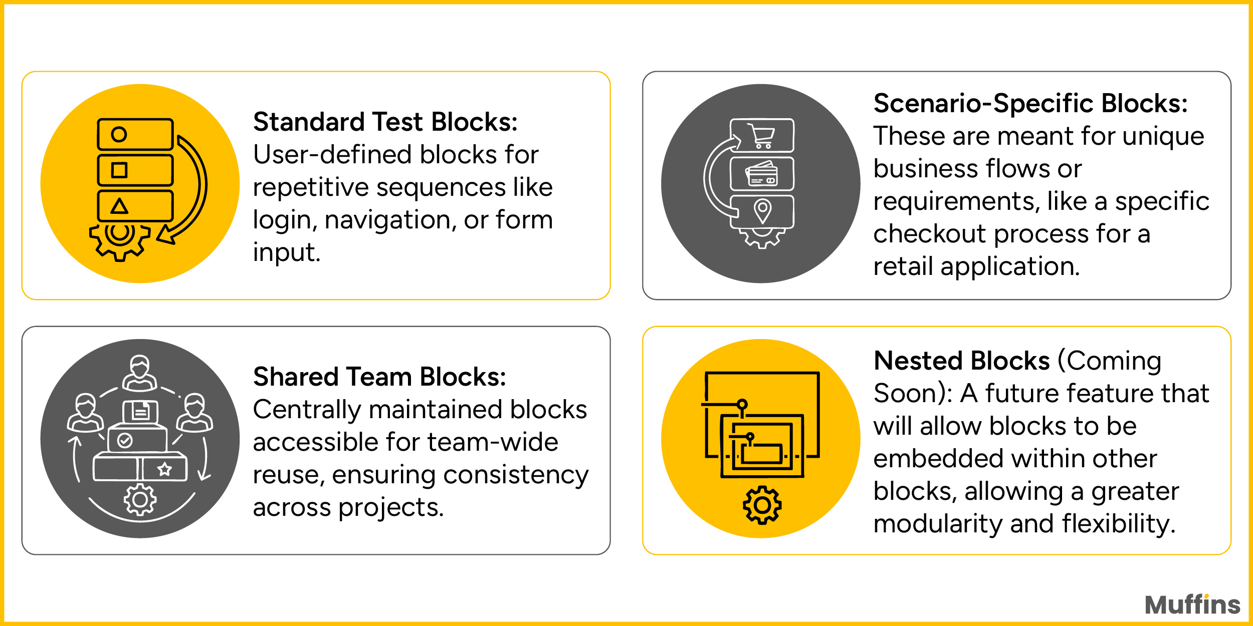 Muffins’ Reusable Test Blocks : Built for Reusability, Speed, Scale and Collaboration